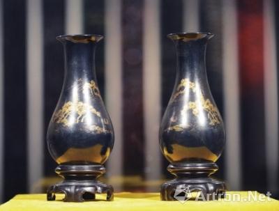 薄料金骨山水對(duì)瓶