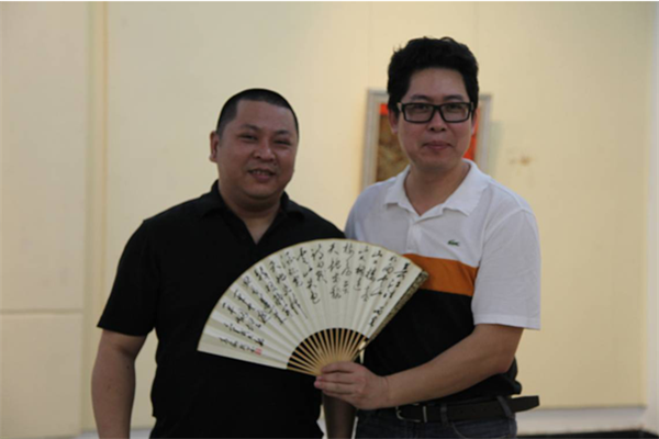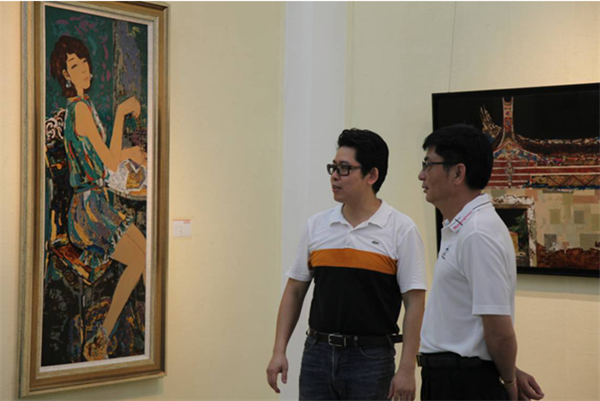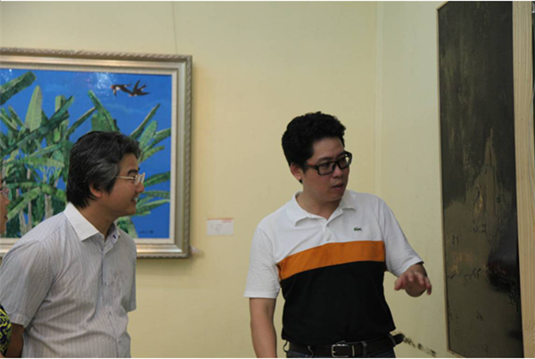 福建省青年美協(xié)主席湯志義和廈門蓮福集團(tuán)董事長(zhǎng)葉水省參觀畫展