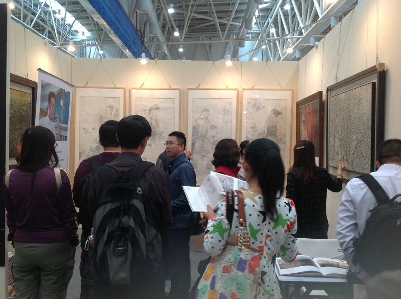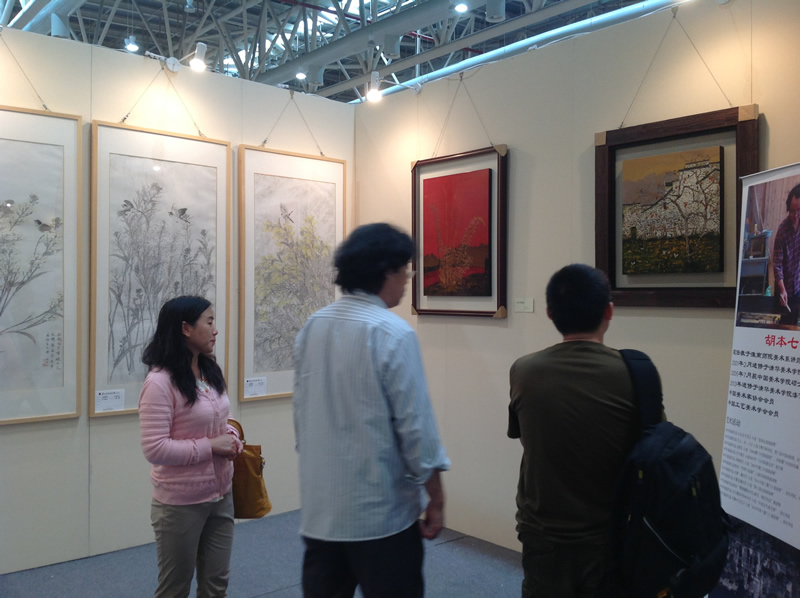 當(dāng)日下午4時(shí)許,在三樓的第四屆中國(guó)畫(huà)節(jié)展廳,一些展區(qū)已經(jīng)開(kāi)始忙著撤展,但是仍有不少收藏家抓住最后的機(jī)會(huì)來(lái)“淘寶”。蘇國(guó)偉、胡本七的漆畫(huà)作品亮相于這次的展會(huì),吸引了眾多的藏家和書(shū)畫(huà)愛(ài)好者。當(dāng)日下午3時(shí)許,在三樓的第四屆中國(guó)畫(huà)節(jié)展廳,一些展區(qū)已經(jīng)開(kāi)始忙著撤展,但是仍有不少收藏家抓住最后的機(jī)會(huì)來(lái)“淘寶”。