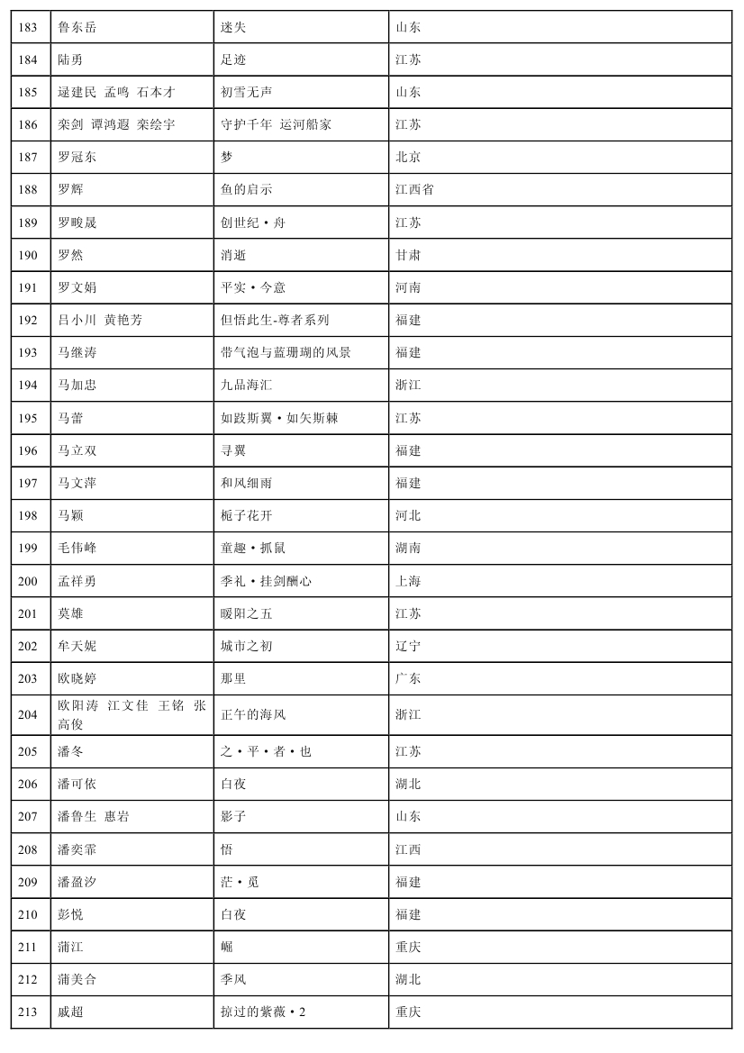 注:參評作品尺寸嚴(yán)格按照畫種尺寸(成品尺寸)要求送件,超尺寸作品展區(qū)一律不接收。請妥善包裝、安全寄送。不在此名單內(nèi)的作者,請勿寄送作品。作品不參評,并由此產(chǎn)生的郵寄、保險、安全等一切后果自負(fù),特此聲明。