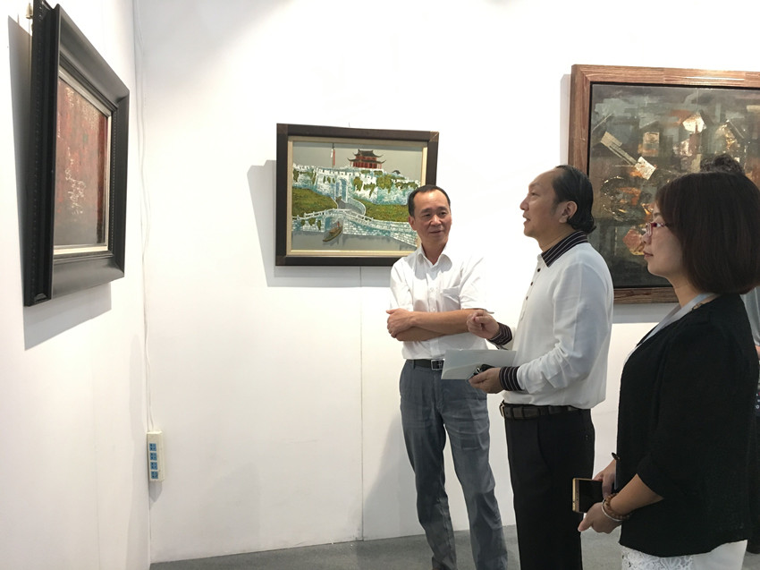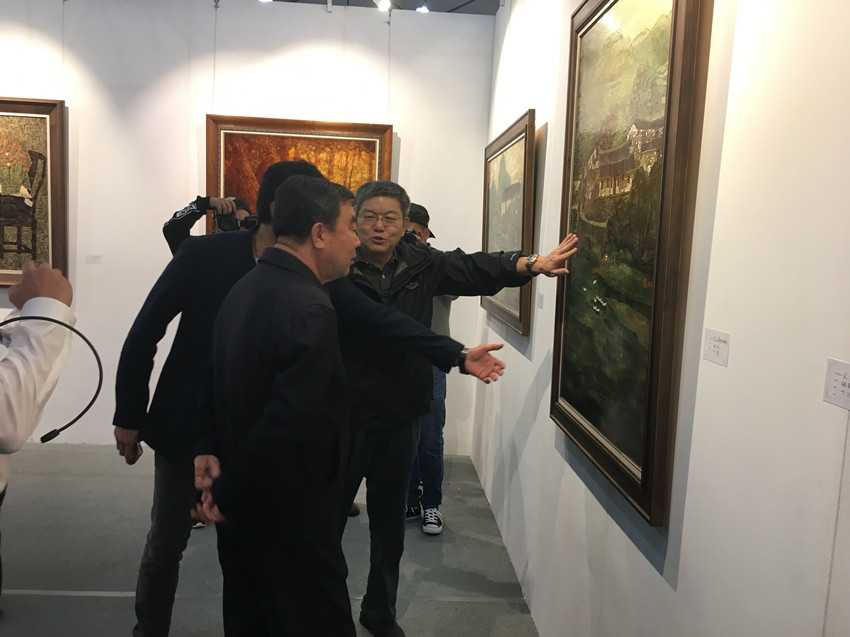 組委會(huì)藝術(shù)總監(jiān)徐夫耕與韓國(guó)畫家前來(lái)參觀指導(dǎo)