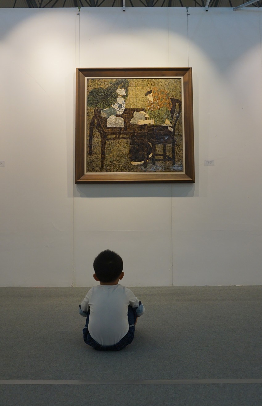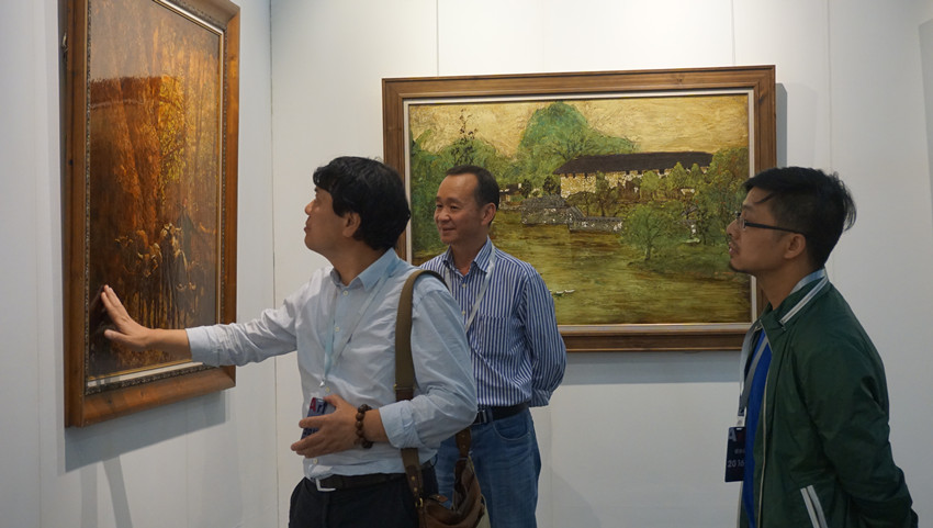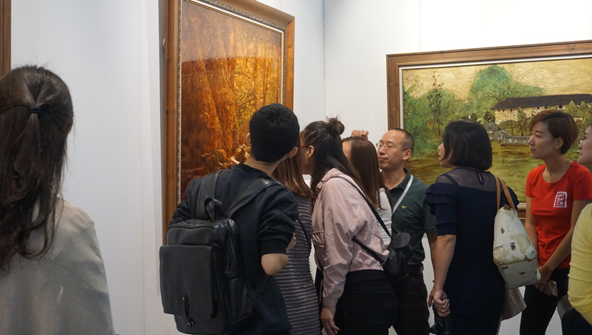 蓮福文化攜帶多位當(dāng)代名家的漆畫作品參與此次藝博會(huì),展現(xiàn)了多元化的不同藝術(shù)形式,漆畫本身的觀澤、質(zhì)感、肌理所產(chǎn)生的神秘藝術(shù)魅力吸引了大量的市民駐足欣賞。
